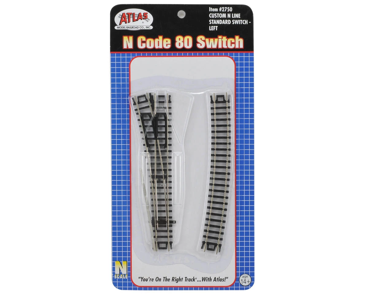 This is a Atlas Model Railroad N-Gauge Code 80 Custom Line Left-Hand Switch Turnout. This is made to be used with the Atlas Under-Table Switch Machine (ATL0065) or a ground throw. Unlike the other N scale switches which have shortened ties to allow for switch machine attachment, Custom N Line Switches have full-length ties. A double-ended throwbar allows you to place your under-table switch machine on either side of the switch. Includes one piece of 19″ track.