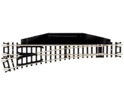 This is an Atlas Model Railroad N-Gauge Code 80 Manual Left-Hand Switch. Manual switches can only be “thrown” (changing the direction of the rail) by flipping a lever on the switch by hand. These Standard N scale manual switches can be easily converted to remote control with the Atlas left hand switch machine (ATLU2715).