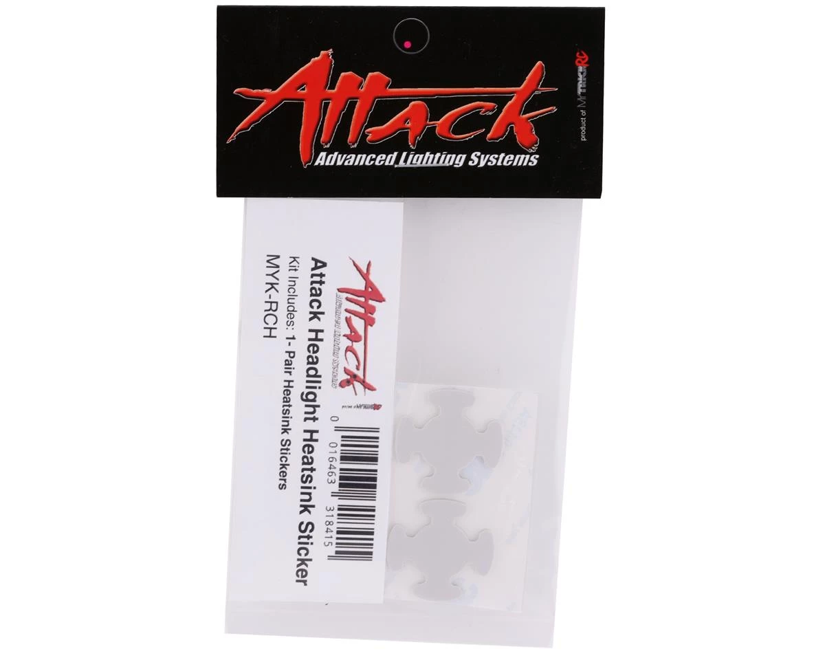 MyTrickRC Attack Headlight Heatsink Stickers. These optional heatsink stickers are intended to increase the surface area for mounting your attach headlights, as well as absorb some of the heat emitted by the high power LEDs. Package includes two heatsink stickers.